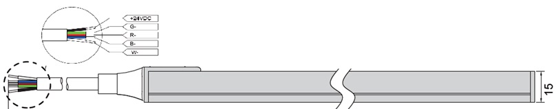 Alimentata in tensione costante in singola connessione, lunghezza massima di 5mt.